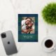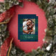 Tarjeta de foto navideña de cuadros plateados, azu