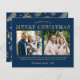 Tarjetas de fotos navideñas con oro azul de la marina de presupuesto