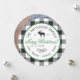 Personalizado económico imprimió tarjetas fotográficas de vacaciones con plantillas sencillas para la personalización. Este divertido diseño presenta una forma de corte circular con fondo de manto de búfalo, un gráfico de renos y una tipografía rústica moderna con colores verdes, blancos y grises carboníferos. El texto dice "Feliz Navidad" en un moderno tipo de letra. Personalízalo con los nombres de su familia, el año u otro texto personalizado. El lado inverso tiene espacio para fotos o texto adicional. Utilice las herramientas de diseño para editar el texto, añadir más fotos y crear una única tarjeta de fotos navideña redonda.