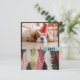 Esta tarjeta de Navidad con retrato presenta una foto vertical enmarcada por un borde negro con árboles geométricos rojos, blancos y dorados debajo. La mezcla moderna de patrones y tonos metálicos añade un ambiente festivo audaz y acogedor.