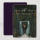 Con una tipografía simple pero elegante, esta tarjeta para guardar la fecha es un diseño clásico que presenta una sola foto vertical. El texto en blanco se coloca en la parte superior de la foto junto con un filtro oscuro para permitir una mejor legibilidad. La parte posterior es de un tono púrpura profundo moteado, pero el color es editable haciendo clic en "personalizar".