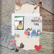 Foto vintage linda Mamá e hija con un gran corazón y perro.