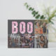 Celebra la temporada espeluznante con estilo con esta moderna tarjeta de collage de fotos Happy Halloween. Con una elegante caligrafía de escritura y un espacio para sus recuerdos favoritos, esta elegante y sencilla tarjeta de Halloween es perfecta para enviar cálidos deseos a la familia y amigos. Ideal para los amantes de los diseños únicos, de inspiración vintage o elegantes de Halloween.