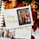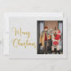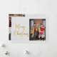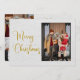 Envíe sofisticados saludos de vacaciones con este elegante guión dorado Fotos de la familia Feliz Navidad. Con dos espacios de fotos enmarcados en un fondo blanco texturado, el diseño muestra "Feliz Navidad" y "Año Nuevo" con elegantes letras de guiones dorados. Personalizada con el nombre de su familia, esta tarjeta plana es una elección atemporal para compartir sus deseos más cálidos con sus seres queridos durante las vacaciones.