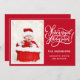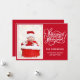 Una forma alegre de enviar saludos navideños a familiares y amigos. Cuenta con una cita moderna de caligrafía "Temporada de vacaciones" sobre un fondo rojo, personalizada con tu foto y nombres favoritos. Reemplaza la foto de muestra con la tuya. Diseño ©Rosalind Moore, Cherry Lane Designs