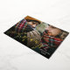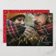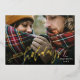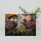Elegante tarjeta de fotos de vacaciones con "Felices Fiestas" en un guión de Relieve metalizado dorado con letras en blanco con tu nombre y año. La tarjeta de vacaciones de Relieve metalizado dorado se invierte para mostrar un patrón de nieve blanca con un fondo rojo.
