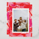 Ilumina los espíritus con esta tarjeta de Navidad moderna y sofisticada que presenta un fondo audaz y mármol hecho a mano en tonos vibrantes rojos y rosados y un borde de lámina dorada. El diseño giratorio aporta energía juguetona, calidez y un toque creativo a la temporada. Es perfecta para familias, parejas o cualquier persona que ame compartir su alegría con estilo.