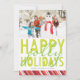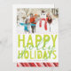 Diseño moderno de tarjeta fotográfica con texto verde brillante y acentos rojos de rayas de caramelo. Para personalizar, ¡suba tu propia foto y escribe tus nombres!