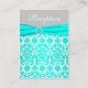 Tarjeta de gabinete Aqua, Gray y White Damask