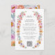 Colorida tarjeta de gabinete Boda. Manténgase informado a sus huéspedes con una tarjeta de detalles de diseño que es tan impresionante como el resto de su suite. Ideal para un evento de primavera, verano o otoño caprichoso, esta carta presenta una corona acuarela elegante llena de peonías coloridas en rosa rosa, fucsia, naranja y amarillo dorado, junto con rosas malva de lavanda, delfino azul, margaritas, flores silvestres y una mariposa suave para añadir encanto. Un código QR en la parte delantera proporciona acceso rápido a información boda, mientras que la parte posterior muestra un patrón de coordinación para un acabado cohesivo. Cree una pieza elegante y útil que vincule toda la visión de su boda, comience a personalizar hoy.