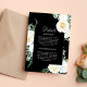 Mejore sus invitaciones de boda con la tarjeta de Boda Black Elegant White Roses. Con unas bonitas rosas blancas decoradas con un llamativo fondo negro, esta tarjeta añade un toque de sofisticación a su suite boda. Ideal para compartir detalles adicionales o mensajes sentidos, refleja tu estilo único y la elegancia de tu celebración. Cada tarjeta del recinto no sólo sirve para un propósito práctico sino que también se convierte en un recuerdo memorable, capturando la esencia de tu historia de amor y la alegría de tu día especial.