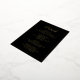 Tarjeta de gabinete boda de Relieve metalizado negro y dorado de estilo tradicional con un diseño sencillo y clásico con "Detalles" en una caligrafía elegante dentro de un borde delgado. La plantilla le permite compartir información importante sobre su día especial. Este elegante diseño es perfecto para un boda formal.