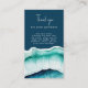 elegante tarjeta de agradecimiento, perfecta para boutiques, pequeñas empresas o tiendas creativas. El diseño presenta un fondo azul marino profundo con un moderno manuscrito "Gracias por tu compra" en un guión blanco nítido. Un impresionante lavabo acuático de color verde verde azulado y esmeralda aporta un toque artístico a lo largo del fondo, creando un aspecto fresco y contemporáneo. La tarjeta ofrece espacio para su mensaje personalizado, información comercial o detalles de contacto en un tipo limpio y minimalista. Esta tarjeta aporta un acabado profesional e inolvidable a cada pedido.