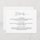 Esta tarjeta de gabinete de detalles bodas presenta una fuente elegante y un diseño minimalista moderno. Es la adición perfecta a tu suite nupcial limpia y contemporánea. También puedes usar esto para enumerar los alojamientos o detalles de cualquier evento; ducha de bebé, ducha de novia, fiesta de jubilación, etc.