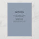 Esta "tarjeta de gabinete Blue Simple Boda Details" proporciona a sus huéspedes toda la información esencial que necesitan para su día especial. Es la opción ideal para parejas que valoran tanto el estilo como la funcionalidad, haciendo que sea más fácil que nunca para sus invitados planificar su asistencia a su celebración. ¡No te quedes sin el tuyo!
