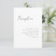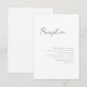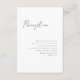Guión mínimo 3,5x5, tarjeta del gabinete de recepción. Texto negro sobre fondo blanco. Parte de una colección de bodas.