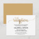 Esta sencilla tarjeta de recepción de caligrafía dorada es perfecta para un boda de moda. El clásico diseño romántico presenta una imitación de la tipografía de Relieve metalizado dorado y un bonito corazón dorado. Personalice esta tarjeta de gabinete de detalles con su información de recepción e incluya también la dirección de su sitio web boda. Nota: Este diseño no tiene Relieve metalizado oro real. Es un gráfico de alta calidad hecho para parecer un Relieve metalizado dorado.