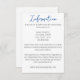 Presentamos nuestra versátil tarjeta de gabinete boda, la adición perfecta a sus invitaciones nupciales. Esta elegante tarjeta le ofrece un amplio espacio para que pueda incluir detalles esenciales para sus huéspedes, como alojamiento en el hotel, direcciones, opciones de transporte, la página web de su boda y más. Asegúrate de que tus invitados tengan toda la información que necesitan para celebrar tu día especial con facilidad y estilo. Personalizar tu tarjeta de alojamiento hoy mismo y garantiza una experiencia boda inolvidable para todos.