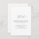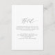 Esta delicada tarjeta de alojamiento de hotel de caligrafía plateada es perfecta para un boda moderno. El romántico diseño minimalista presenta una bonita y elegante tipografía de color gris plateado sobre un fondo blanco con un aspecto limpio y sencillo.