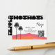 Palm Springs Modern pequeña tarjeta de gabinete con código QR/ sitio web. Cuenta con una montaña desierta y palmeras. Personaliza tus datos.