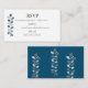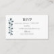 Sencilla y elegante tarjeta de gabinete RSVP con delicadas hojas grises y grises en la tarjeta delantera con fondo blanco y fondo azul oscuro en la parte posterior de la tarjeta. Use esta tarjeta para personalizar su invitación RSVP de boda. Esta tarjeta es perfecta para su clásica y elegante invitación a la boda.