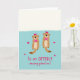Esta tarjeta del Día de Galentine presenta a dos adorables nutrias de dibujos animados paradas una al lado de la otra en el centro. Cada nutria es de color marrón claro con un vientre cremoso, una pequeña sonrisa y un lazo rosa brillante en la cabeza. Cada una sostiene un corazón rosa a juego cerca de su pecho, mostrando afecto y amistad. La parte inferior del fondo es un suave azul de huevo de petirrojo, separada de la parte superior de color blanco por una suave línea ondulada. Pequeños corazones rosados flotan alrededor de las nutrias, agregando calidez a la escena. Cerca de la parte inferior, el mensaje dice “¡a una galentine OTTERLY increíble!” en letras rosadas brillantes y dibujadas a mano que se destacan claramente. Esta tarjeta es una forma dulce y considerada de celebrar a una amiga cercana y hacerle saber cuánto significa para ti.