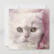 Texto personalizable en la parte delantera y trasera, gato blanco en crema de fresa. Tarjeta de agradecimiento.