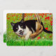 Este blanco en la tarjeta trasera es todo lo que necesitas para una nota rápida o para un agradecimiento. Diseñé esta tarjeta a partir de una fotografía recortada de un gato esmoquin rescatado llamado Charlie. Este lindo gato tiene un bigote y es tan lindo en un lucio tejido. Me gusta tener cartas como esta a mano para una nota a vecinos o compañeros de trabajo. A este cuidado lo amaría cualquiera que le guste los gatos.