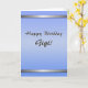 Tarjeta azul simple de la pendiente con la decoración de plata y las palabras "feliz cumpleaños Gigi!" El interior es en blanco para escribir su propio saludo personal.