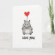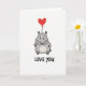 Tarjeta de globo con corazón de hipopótamo te amo
