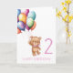 Tarjeta de globos de 2º cumpleaños Teddy Pink