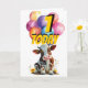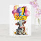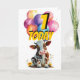 Tarjeta de globos de cumpleaños 1 para vaca marrón