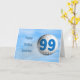 Una gran tarjeta de diversión para un golfista o una ocasión de golf. Una pelota de golf volando por el aire con 99 escritos en ella.