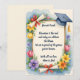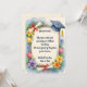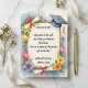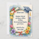 Celebre el logro académico de su hija con esta tarjeta plana de felicitación profundamente sentimental y bellamente ilustrada. Este diseño presenta un borde exuberante y colorido de flores silvestres de acuarela, incluyendo lirios y tulipanes, entrelazados con imágenes clásicas de graduación como un gorro azul de graduado y diplomas enrollados con cintas rojas.