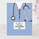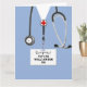 Escuela de enfermería creativa o tarjeta de graduación de la escuela de medicina con matorrales azules del hospital. Para personalizar el texto de edición para agregar el nombre y las credenciales de mantenimiento.
