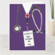 Plantilla personalizada de tarjeta de graduación de la escuela de enfermería con exfoliaciones moradas del hospital. Para que el personalizar edite texto para agregar el nombre de su enfermera favorita.