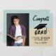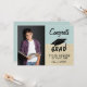 Tarjeta de Graduación Rústica de Fotografía Grad Blue. Felicita a un graduado con esta increíble tarjeta con una foto. Tarjeta de graduación con gorra de graduación, texto Grado de felicitación, nombre del graduado, nombre de la escuela y Clase de - personaliza con tus datos. Textura rústica beige y fondo azul. Haz tu propia tarjeta de felicitación de graduación.