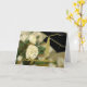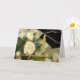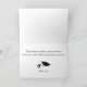 Elegante tarjeta de felicitación para graduación, con una fotografía de claveles blancos como fondo. Gráficos de la gorra de mortero de un graduado negro, con un tono de tono dorado, en la esquina superior derecha y texto gráfico de tono dorado dice Felicitaciones, en la parte delantera. El saludo de texto negro, por dentro, está listo para personalizar para leer lo que quieras. Tarjeta de bonito a tu chica graduado favorito.
