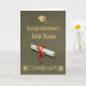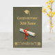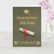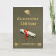 Imagen de diploma sobre el rico fondo de oliva con raya decorativa ornamental, gorra de graduación y la inscripción "Felicitaciones" en doloroso aspecto de hoja de oro. Añadir el nombre de su graduado o dejar en blanco eliminando Añadir nombre