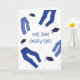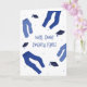 ¡Bien hecho, pantalones inteligentes! Felicita a un recién graduado en tu vida con esta graciosa tarjeta de graduación. El diseño en azul y blanco presenta una tipografía lúdica y ilustraciones con capuchas de niebla y de graduación.