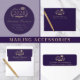 Tarjeta de graduación elegante en morado y dorado
