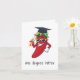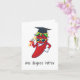 Esta tarjeta de graduación muestra un retrato de una pimienta con una gorra de graduación con la leyenda "un grado más caliente".