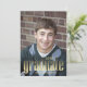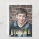 Comparte el gran logro de tu graduado con un diseño de graduación moderno con tipografía dorada que incluye un práctico código QR para detalles del evento o un sitio web de celebración. El diseño minimalista y limpio mantiene el enfoque en el logro mientras ofrece un estilo elegante y contemporáneo. Perfecto para graduados de secundaria o universidad, esta plantilla personalizable te permite personalizar el nombre, año de graduación, escuela e información de la fiesta. Un recuerdo práctico y elegante para amigos y familiares.