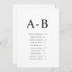 Tarjeta de gráfico de asientos de Boda alfabético clásico