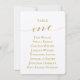 Escritura de caligrafía negra con tipografía florida sobre papel blanco crujiente para tarjetas de gráfico de mesa.