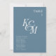 Dusty Blue Elegant Classic Monograma Boda de mesa número de asiento Tarjeta de cartas con nombres de invitados. Todos los textos están preorganizados para que puedas personalizarlos fácil y rápidamente con tus propios detalles.