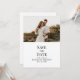 Abraza la elegancia atemporal con nuestra Tarjeta de Guarda la Fecha con Foto Personalizada en Blanco y Negro. Con una foto cautivadora en la parte superior y detalles esenciales elegantemente mostrados en tipografía negra sobre un fondo blanco, esta tarjeta emana sofisticación. La parte trasera muestra monogramas en un diseño audaz en blanco y negro, asegurando un anuncio chic y elegante para tu día especial.