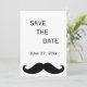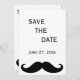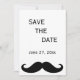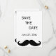 Tarjetas de invitación de Guarda la Fecha de boda gay con bigote negro y texto negro personalizado impreso en fondo blanco