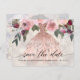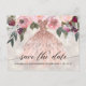 Tarjetas postales de guardar fecha de Quinceañera con diseño floral moderno. Diseño con vestido dorado rosa y elementos florales sobre un fondo de perla brillante. Personalice con su foto y detalles en el reverso.