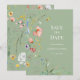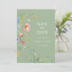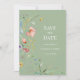 Haga que sus invitados conozcan la fecha con esta encantadora tarjeta de aviso de fecha de boda con flores silvestres en verde salvia, que presenta delicadas flores silvestres pintadas a mano sobre un suave fondo verde salvia.